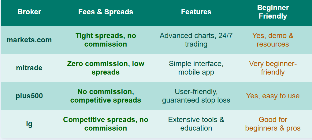 المميزات للمبتدئين: حسابات تجريبية، موارد تعليمية، سهولة الإيداع والسحب.