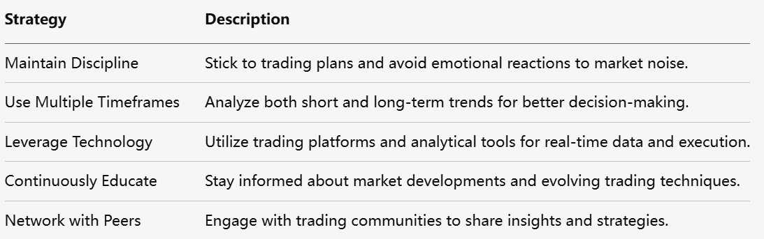 تشكل التقلبات مخاطر وفرصًا في الوقت نفسه. يجب على المتداولين استخدام أدوات إدارة المخاطر المناسبة والنظر في استراتيجيات مصممة للأسواق المتقلبة، مثل الاستراتيجيات الثنائية (Straddles) أو المزدوجة (Strangles) في تداول الخيارات. الحفاظ على الانضباط وتجنب اتخاذ قرارات عاطفية خلال فترات التقلب أمر بالغ الأهمية.