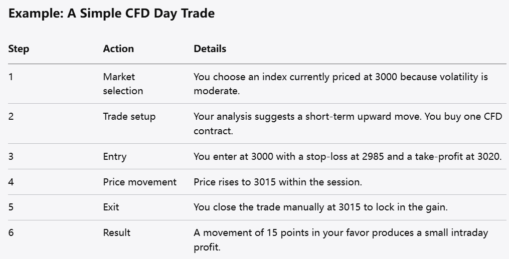 تحظى عقود الفروقات (CFDs) بشعبية بين المتداولين اليوميين لأنها تتيح المضاربة على تحركات الأسعار دون امتلاك الأصل الأساسي. فهي توفّر إمكانية الوصول إلى العديد من الأسواق، بما في ذلك المؤشرات والسلع وأزواج العملات الأجنبية والأسهم الفردية، وكل ذلك من خلال منصة تداول واحدة. ومن أهم مزاياها للمتداول اليومي سهولة فتح صفقات شراء أو بيع، ما يتيح التداول في الأسواق الصاعدة والهابطة على حد سواء. كما توفّر عقود الفروقات الرافعة المالية، أي إمكانية فتح صفقات أكبر باستخدام إيداع أولي أصغر.