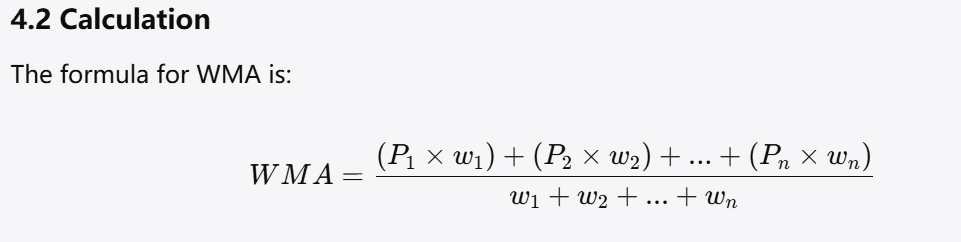 يعطي المتوسط المتحرك المرجح (WMA) أوزانًا مختلفة لنقاط الأسعار، مع التركيز على البيانات الأخيرة أكثر من البيانات القديمة.