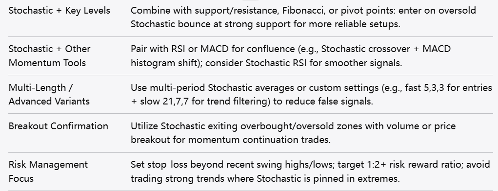 تطبيق عملي آخر يشمل السلع مثل النفط الخام. في بيئة تداول متقلبة نتيجة التوترات الجيوسياسية، يمكن أن تتأرجح أسعار النفط بسرعة. يمكن للمتداولين الاستفادة من مؤشر الستوكاستك لتحديد فرص تداول قصيرة المدى خلال فترات التقلب العالية، حيث قد تنتشر الاختراقات الكاذبة. إن معرفة متى يمكن الاعتماد على المؤشر جنبًا إلى جنب مع متابعة الأحداث العالمية يمنح المتداولين نهجًا أكثر دقة ومرونة في اتخاذ القرارات.