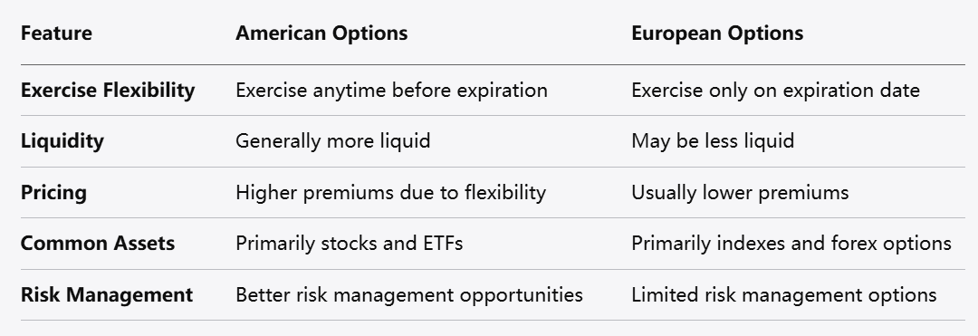 الخيارات الأوروبية: يمكن تفعيلها فقط في تاريخ الانتهاء، مما قد يحد من الفرص الاستراتيجية للمتداولين الذين يسعون للاستجابة لأحداث السوق.