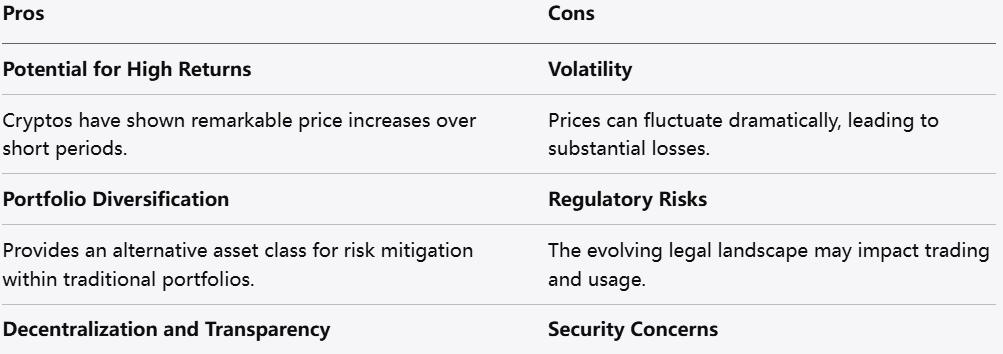 Investing in cryptocurrencies comes with its own set of advantages and disadvantages. Understanding these can help beginners make informed decisions.