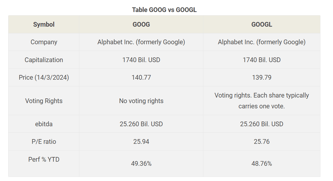 Alphabet stocks analysis: Alphabet issues two primary share classes that trade under distinct tickers.