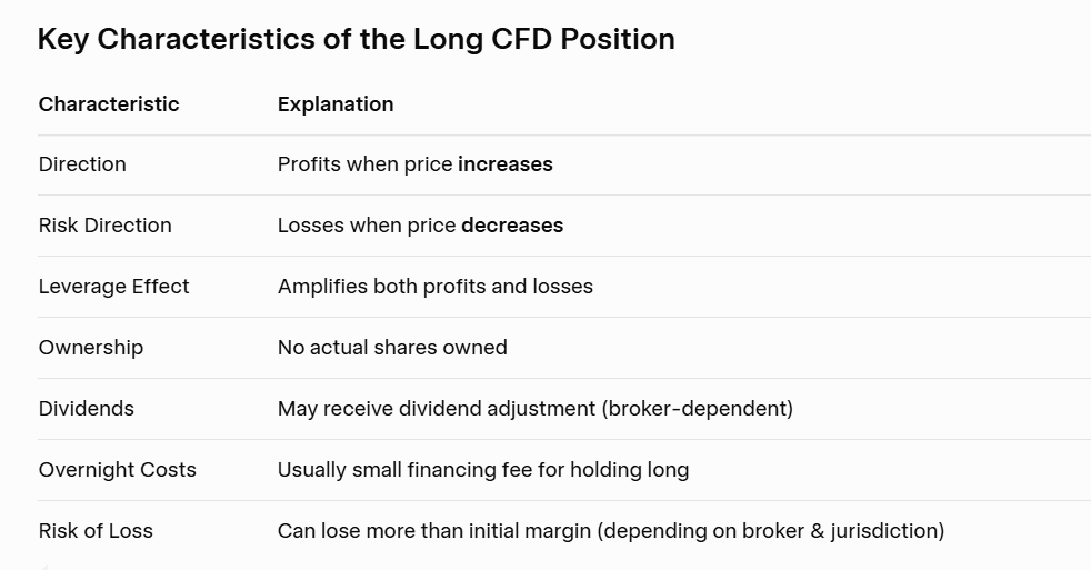 Closing a Long Position: To close the position, the trader sells the CFD at the current market price. The difference between the opening and closing prices determines the profit or loss.