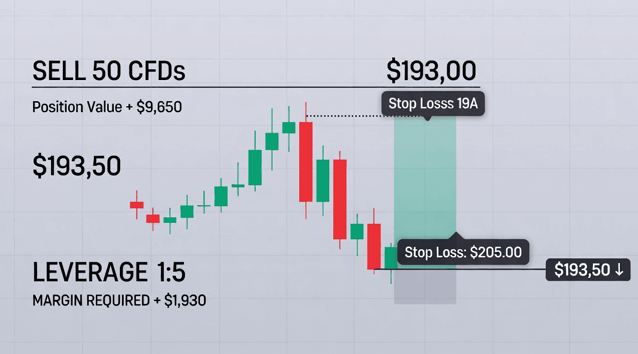 Closing a Short Position: To close the position, the trader buys back the CFD at the current market price. The profit or loss is calculated by the difference between the selling and buying prices.