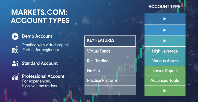Markets.com offers several account types tailored to different trading styles and preferences: