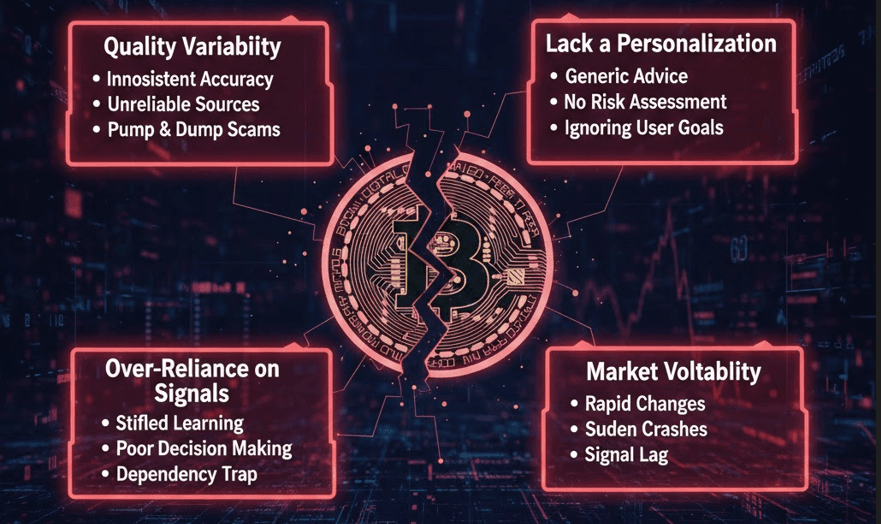 Free crypto signals are typically generic and may not take individual risk tolerance or trading styles into account. Traders must adapt these signals to their personal strategies, which can lead to misalignment and potential losses.