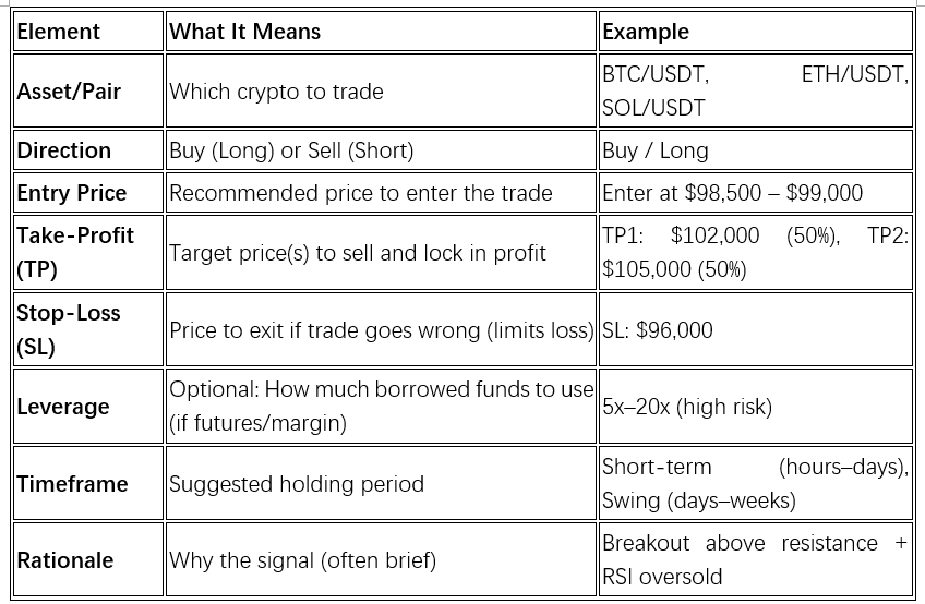 Websites and Blogs: Various crypto-focused platforms offer signal services, often with accompanying analysis and advice on market trends.