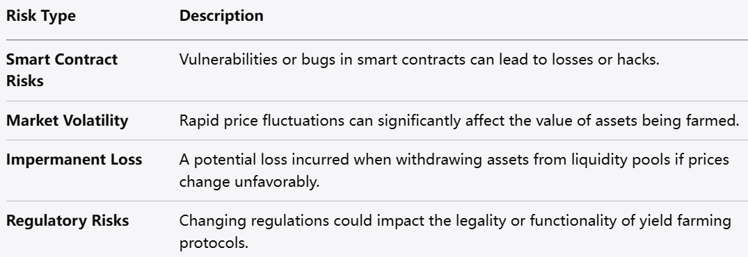 While yield farming presents lucrative opportunities, it also comes with significant risks that investors must consider: