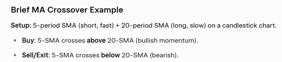 Moving averages smooth out price data to help identify trends. The most common types are the simple moving average (SMA) and the exponential moving average (EMA). A popular approach is to look at the relationship between a shorter-term moving average and a longer-term moving average. For example, when a short-term average crosses above a long-term average, it may signal the start of an uptrend.