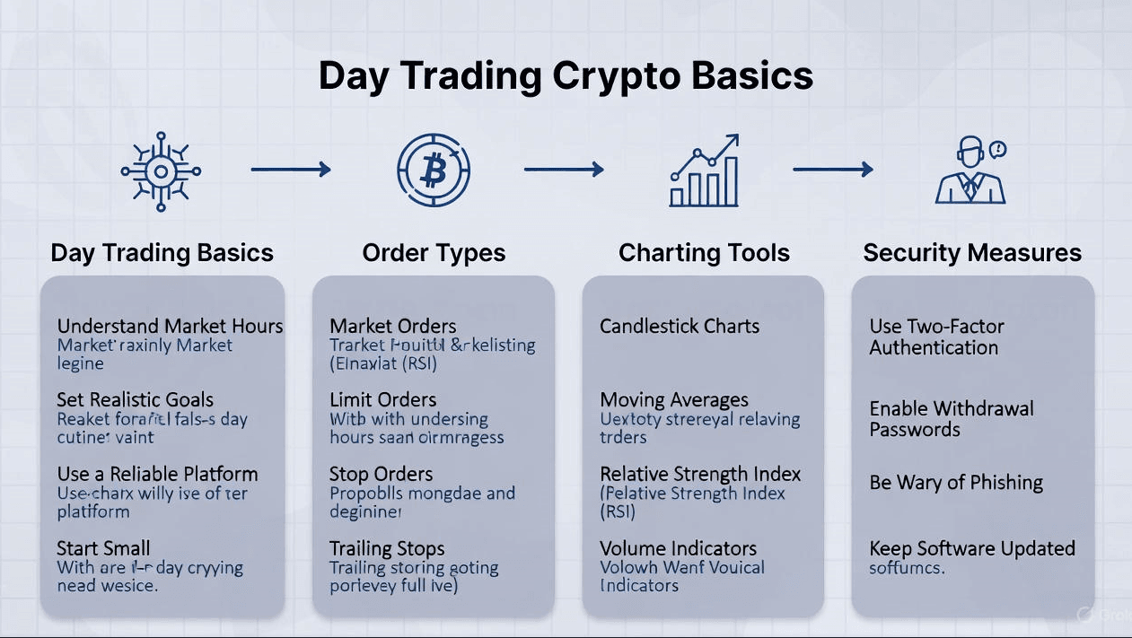Starting as a crypto day trader requires preparation and discipline. Day trading, while potentially rewarding, is risky without a clear approach. Below are the key steps to begin your journey.