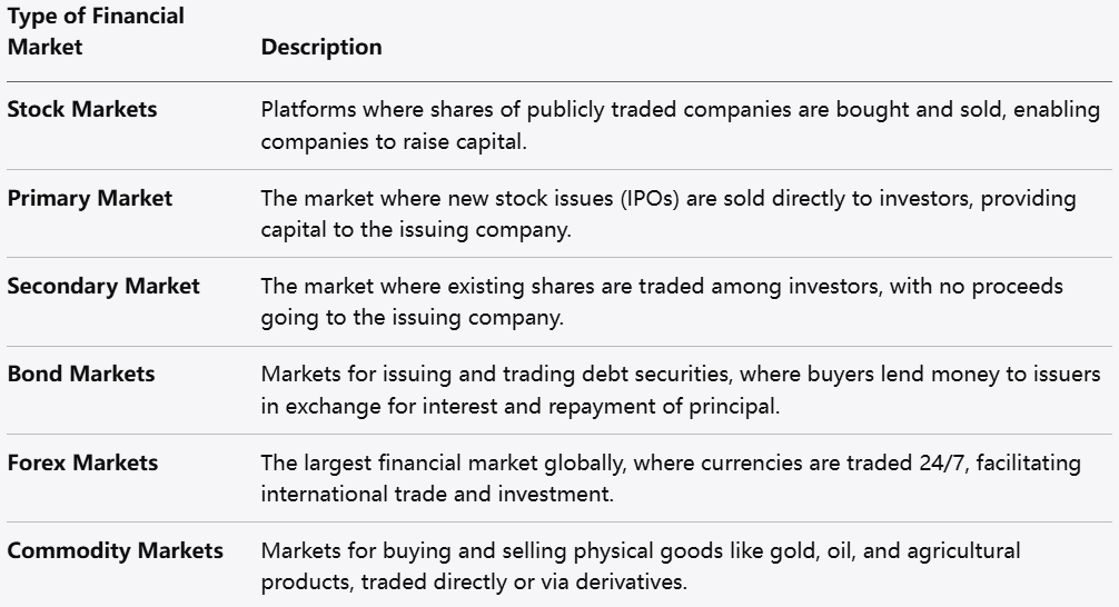 Understanding the various types of financial markets is essential for potential investors.