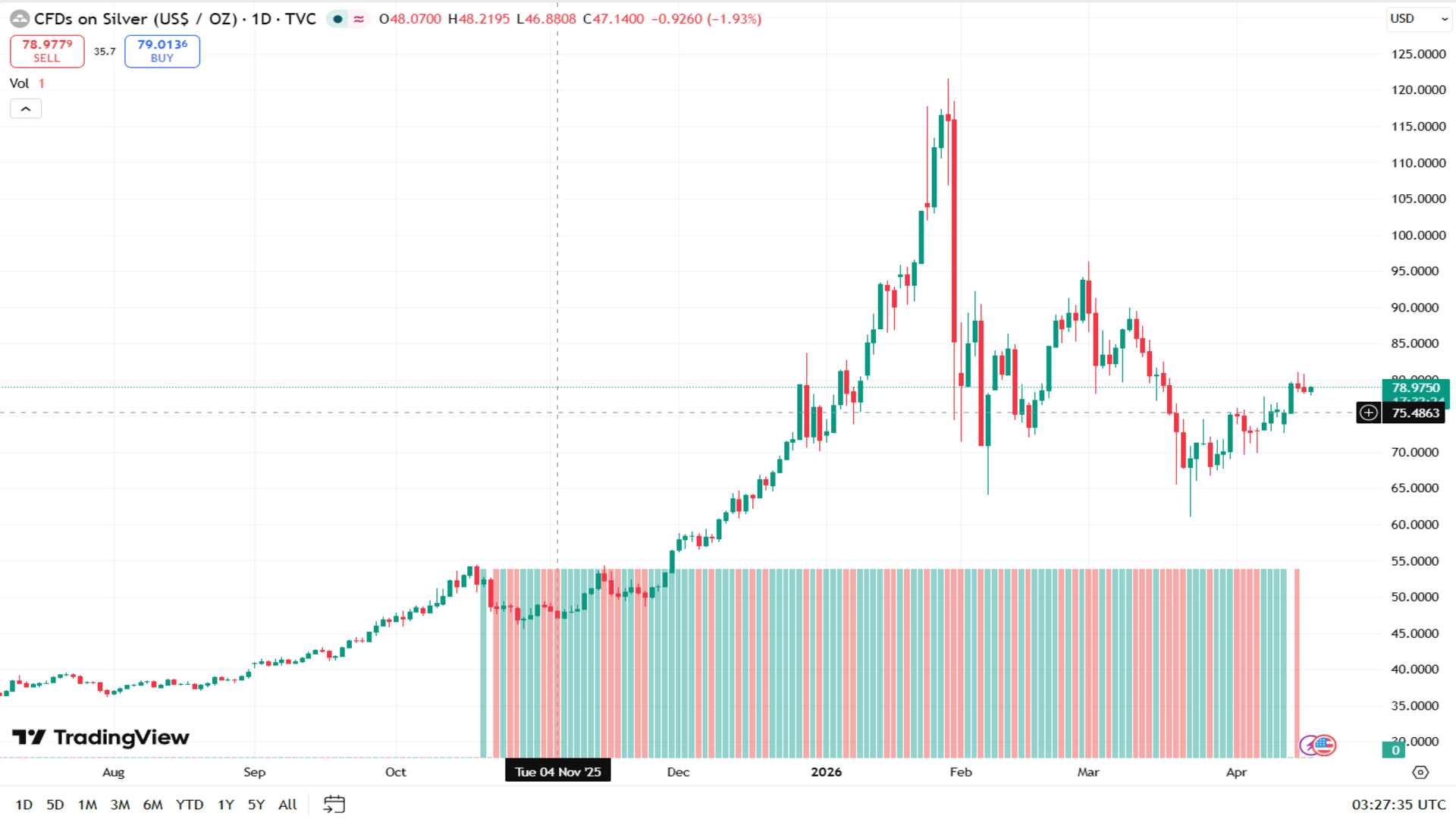 The spread is the cost of entry. Because gold is more heavily traded, the spreads are usually tighter. For short term traders who enter and exit many times, this lower cost is a significant advantage. Silver spreads are wider, which means the price has to move further in your favor just for you to break even on the trade.