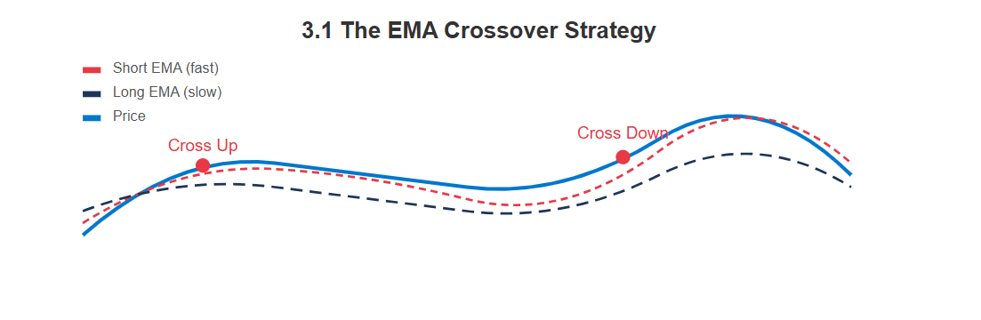 This method uses two exponential moving averages (EMAs) of different lengths. When the shorter-term EMA crosses above the longer-term EMA, it signals a potential upward move. Conversely, a crossover below suggests a downward move. It helps identify trend changes early.