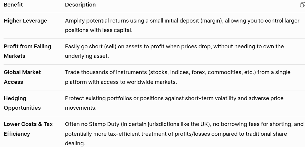 No Ownership: Since you do not own the underlying assets, there are no additional costs associated with buying and holding stocks, such as dividend payments or ownership documentation.