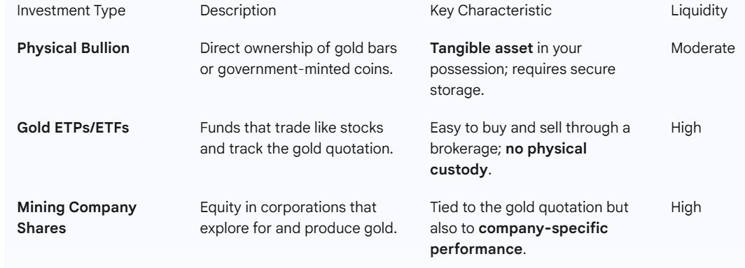 The realm of gold placement offers several distinct pathways for acquiring exposure to the metal's market movements and intrinsic value: