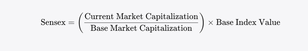 The Sensex is calculated using the free-float market capitalization method. This approach considers only the shares available for trading in the market, excluding locked-in shares held by promoters and other insiders. The formula used for this calculation is as follows: