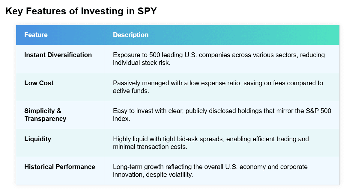 2. The New Investor: Someone just beginning their investment journey may feel overwhelmed by the sheer number of choices available. SPY offers a simple and effective way to get started. It provides broad market exposure without the need for extensive research, allowing beginners to participate in market growth while they learn more about investing.