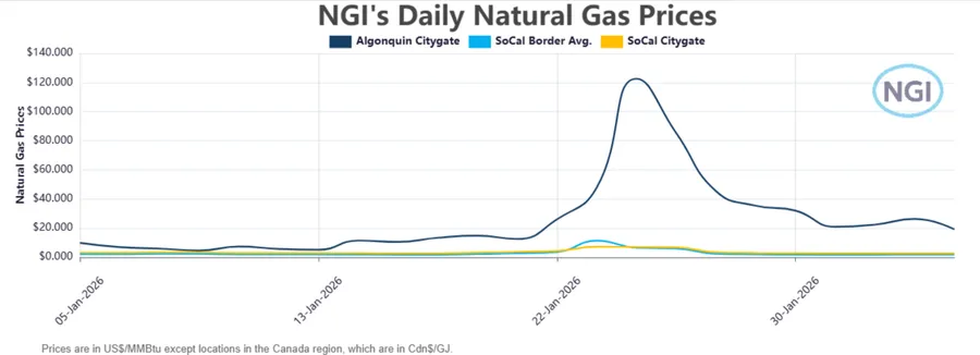 MidDay Snapshot: Northeast Spot Natural Gas Prices Surge on Renewed Cold While West Texas Slides