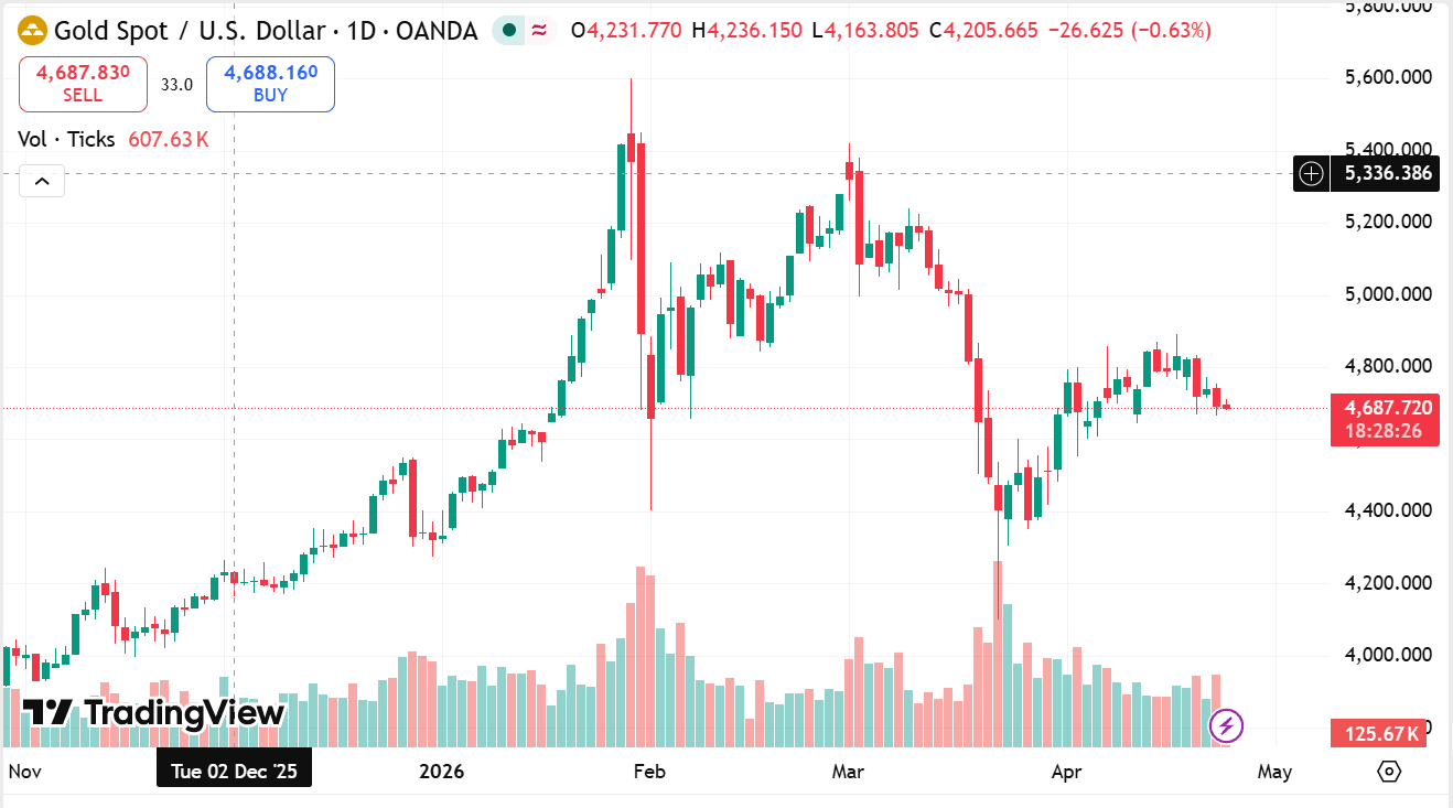 • The metal’s price remains near a key support level around 4,680 to 4,700.