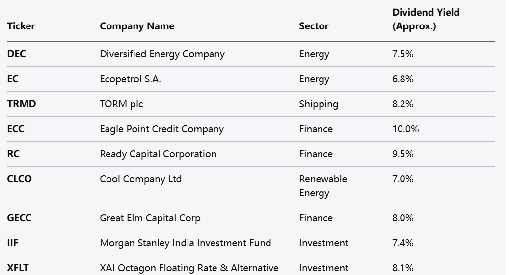 Eagle Point Credit Company (ECC): Engages in credit investments, known for its high dividend yield.